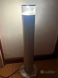 Lampada da esterno a colonna in alluminio satinato con diffusore LED integrato. Design moderno, resistente agli agenti atmosferici, ideale per vialetti e spazi outdoor.