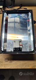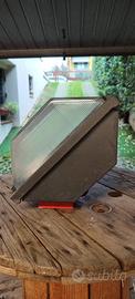 Vendo per inutilizzo applique da esterno da posizionare a parete. Marca Prisma mod. Basic con grado di protezione IP 55 Corpo i alluminio colore nero e schermo in vetro, misure L=31cm, P=26cm, H=22cm.