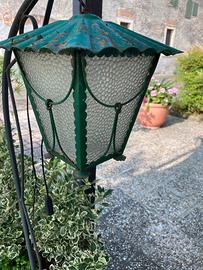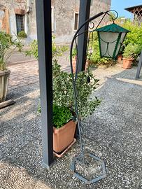 Lampada con piedistallo in ferro battuto con presa elettrica.