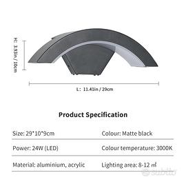 Lampada da parete per esterni Comely 24W, impermeabile IP65, per interni/esterni, lampada da parete per esterni in alluminio nero per giardino, patio, ingresso, bianco caldo 3000K