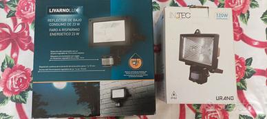 due fari con sensore di presenza. uno con luce alogena e l'altro con basso consumo attacco e 27 con lampada da 23 vatt. entrambi nuovi mai usati per errato acquisto. 10 € cadauno.