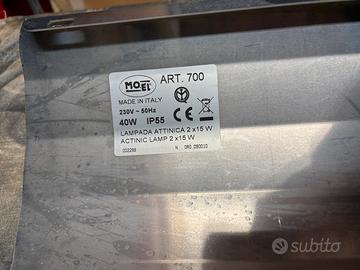 Lampada attinica con lampade UV MOEL. Compreso cartonicini adesivi. In acciaio inox, ideale per giardino.