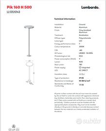 Pik 160 H 500 - Adatto per l’installazione a terra e parete. Corpo e palo in alluminio anodizzato EN-6026; elevata resistenza all’ossidazione grazie al trattamento di anodizzazione. Diffusore in policarbonato ottico con finitura PoliGLASS, tramite stampaggio ad iniezione. Guarnizioni in silicone. PIK: Apparecchio inaccessibile, fornito con 2m di cavo di alimentazione H05RN-F pre-cablato. PIK WALL: Apparecchio inaccessibile, fornito con 0,2m di cavo di alimentazione H05RN-F pre-cablato. Bulloneria in acciaio inox A4. Disponibile versione LED a tensione di rete. Disponibile versione 24V. LED 4000K (N), 3000K (3) o 2700K (2). LED a tensione di rete. Nessun rischio fotobiologico; RG0 gruppo di rischio esente (EN62471).