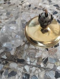 vetro adattato ...lampada olio ottone antica epoca fuoco collezione oggettistica vetrina taverna negozio osteria