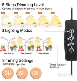 Lampada per Piante, Lampada Piante Coltivazione, 3 Pack lampada led piante, Spettro completo Lampada di Crescita con Timer Auto 3H/6H/12H e 5 Livelli di Luminosità. Ideale per piante grasse, completamente regolabile o per piante in punti della casa con poca luce. Come nuova.