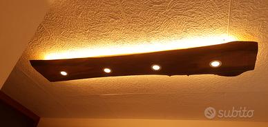 Lampada artigianale in legno di rovere a soffitto con illuminazione a Led fatta interamente a mano. Possibile le personalizzazioni in base alle misure.