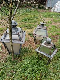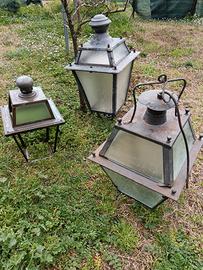 Vendo 3 lampadari da esterno da restaurare. Il più piccolo è in rame, gli altri in metallo. Vecchia fattura.