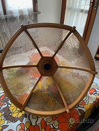 Vendo per trasferimento Lampadario da soffitto per casa e anche Taverne, in ottime condizioni, in legno, spicchi in vetro opaco a forma di fiore opaco con vari disegni vintage.