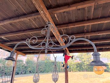 Due porta lampade. Le foto sotto del lampadario montato in gazebo, è suo fratello (messo per esempio) perfetto per arredo di un giardino o di un bar.
