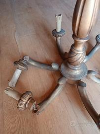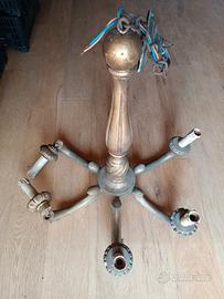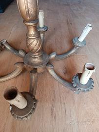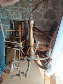 lampadario a bracci in legno. come si vede la parte terminale di un braggio è da incollare