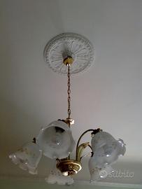 Lampadario vintage anni 80 dorato, 5 bracci con campane in vetro disegnato color bianco satinato perfettamente funzionante pronto per essere collegato e acceso in buone condizioni come in foto cedo a soli 50 euro. Astenersi perditempo e affaristi! Offro e pretendo massima serietà! Grazie. Solo ritiro di persona previo appuntamento. Se interessati 3291424052 Gabry