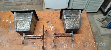 Lampade applique rustica da esterno/interno in ferro battuto e vetro ambrato vendo per inutilizzo il prezzo si intende per tutte e due le applique
