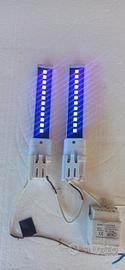 2 lampade led a luce UV tipo ROHS 365+405 nm da 9 W con trasformatore, come da foto.