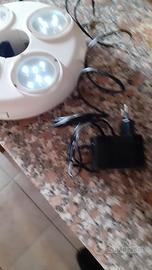 n. 2 lampade ciascuna con 4 luci led da usare cosi semplicemente posandole su un piano di appoggio⁸ o applicandole ad ombrellone su terrazzo o in giardino funzionanti a pile o con caricatore elettrico