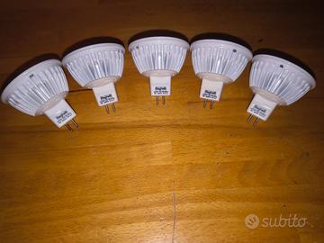 Vendo 5 lampadine LED marca Beghelli da 12 volt ac/dc con attacco bi spina GU5.3 MR16. Specifiche: 4 watt, 550 lumen, 3000k. Alimentazione a 12 volt sia in tensione alternata (ac), sia in tensione continua (dc). Nuove senza scatola. Vendo causa errato acquisto.