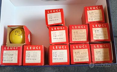Lampadine colorate Leuci, vintage 200 v, 14 e con scatola. Blu rosso verde giallo