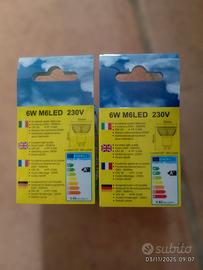 Set di due lampadine LED M6 da 6W. Vendo entrambi a €5 - Attacco GU10. - Tensione di alimentazione 230V. - Marca: MARINO CRISTAL.