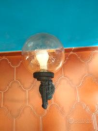 LAMPIONE APPLIQUE DA ESTERNO DA COLLOCARE ALL'ENTRATA O SU UN BALCONE BRACCIO IN FERRO BATTUTO MUNITO DI LAMPADA BASSO CONSUMO (APPENA SOSTITUITA)