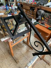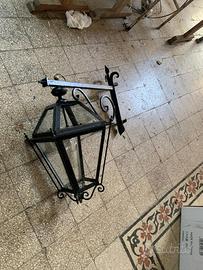 lampione in ferro battuto vintage con impianto elettrico e vetri. misura:altezza 65 profondità 70 larghezza 35. Spedizione €25