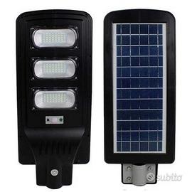 - 60 Watt 32 Euro - 90 Watt 38 Euro - 120 Watt 42 Euro - 240 Watt 55 Euro - 300 Watt 65 Euro - 600 Watt 100 Euro - 800 Watt 115 Euro - 1000 Watt 120 Euro -Materiale: alluminio -Potenza: 60 w -Colore luce: 6500 k (bianca fredda) -Pannello solare -Batteria interna ricaricabile tramite pannello solare -Sensore crepuscolare per accensione automatica -Sensore di movimento -Luce unidirezionale, quindi totale assenza di inquinamento luminoso, accensione istantanea -Resa luminosa della lampada costante nel tempo -Comandabile tramite telecomando. DESCRIZIONE LAMPIONE STRADALE FARO FARETTO AD ENERGIA SOLARE A LED FOTOVOLTAICO 60W. La soluzione definitiva per risparmiare e allo stesso tempo illuminare in maniera efficace. Questo lampione a led stradale ad energia solare è infatti un concentrato di tecnologia, innovazione e design. Il corpo è unico ed è costituito da tutti i componenti necessari al funzionamento in autonomia del lampione led, e grazie all'elettronica interna, esso garantisce, a batteria completamente carica, circa 12 ore di illuminazione continua. Il pannello fotovoltaico del lampione ha una potenza pari a 60Watt, esso permette di ricaricare la batteria interna, ed i Led a luce bianca. L'installazione è semplice e rapida, basta infatti, fissare il lampione fotovoltaico in un palo o a muro, attivare lo stesso tramite l'interruttore e il gioco è fatto, il lampione lavorerà autonomamente. Modello crepuscolare e con telecomando in dotazione per le varie modalità e funzione del lampione stesso, come abilitare la durata di illuminazione o l'accensione dei numeri di led. Contenuto della confezione 1 Faro lampione con pannello integrato 1 Telecomando