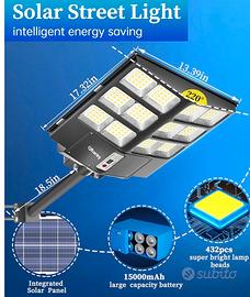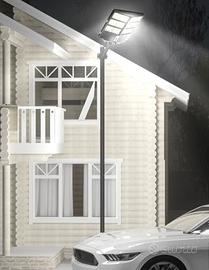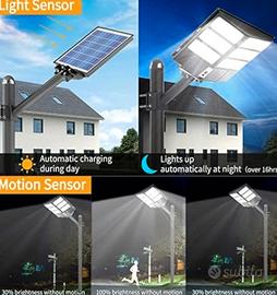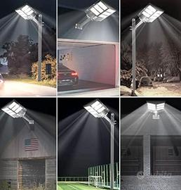 Lampione Solare Led Esterno, 200000LM Faro Led Esterno con Pannello con Telecomando, IP67 Impermeabile Lampioni Solari Crepuscolare, 6500k Luci Solari per Giardino, Strada