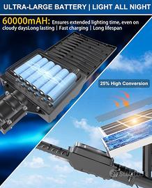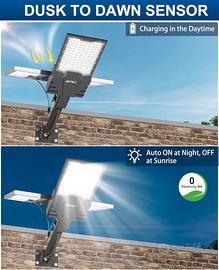 Lampione Solare LED Esterno, 6500K Faro led Esterno con Pannello Solare, IP67 Impermeabile lampioni Solari con Telecomando, Lampione Stradale per Cortile Garage Strada