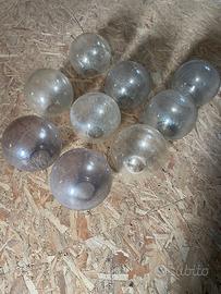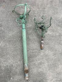 Set completo o blocchi. Vendo splendido ed elegante set di illuminazione da esterno vintage in ferro battuto/metallo decorato. I pezzi presentano una bellissima lavorazione artigianale a ricciolo, ideali per ville, casali o giardini storici. Gli oggetti sono integri e possono, volendo, essere oggetto di restauro. Disponibile alla vendita in blocchi separati o in blocco unico scontato: BLOCCO 1: I Giganti da Giardino • 2 Lampioni monumentali (Altezza circa 2 metri) a 4 luci ciascuno (3 bracci laterali + 1 centrale). • 1 Lampioncino coordinato più piccolo (testa singola). • Set di 9 bocce/globi inclusi: 7 in vetro originale e 2 in materiale plastico di alta qualità. Diametro 24 cm. • Prezzo:490€ BLOCCO 2: Lanterne Nere a Parete • 1 Lanterna classica a base esagonale con braccio a muro decorato altezza 50 cm. • 1 Lanterna a gabbia dal design industriale/rustico. • Prezzo: 110€ BLOCCO 3: Set Verde Salvia • 1 Lampione singolo con palo medio altezza 110 cm. • 1 Testa di lampioncino separata con riccioli molto elaborati. • Prezzo: 90€ OFFERTA BLOCCO INTERO (Tutti i pezzi): 590€ (Risparmio di 100€ rispetto all'acquisto separato) Informazioni Aggiuntive: • Ritiro: A carico dell'acquirente (viste le dimensioni dei pali da 2 metri è necessario un furgone o portapacchi idoneo). • Formula: Visto e piaciuto.