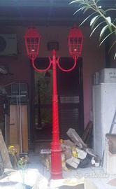 Lampioni da esterno rossi, a due luci, nuovi, mai montati. Altezza circa 2.40 m larghezza circa 0.80 m