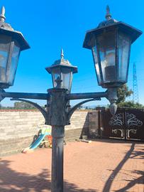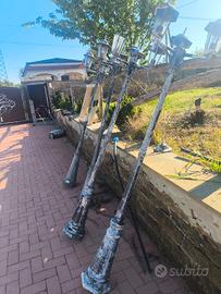 4 lampioni da giardino alti 220cm, struttura in alluminio e portalampade con vetri...sono da sverniciare e riverniciare...stavo cominciando io a fare il lavoro ma poi ho deciso di cambiare genere NON SPEDISCO