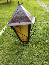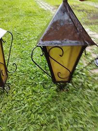 Nr 1 Lampione in ferro da parete, nr 2 lampioni da esterno con vetro giallo prezzo cadauno