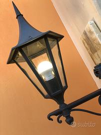Lampioni artistici (2 pezzi)in alluminio x esterno con portalampade E27, vetri trasparenti, perfetti x ville antiche. Piccole parti di verniciatura da ritoccare