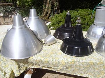 I due Lampioni di "Tipo" industriale molto originali e caratteristici misurano Cm. 55 di Altezza totale...e Cm. 40 il Diametro della campana...sono completi del loro portalampade in porcellana e delle loro lampadine in dotazione...pronti per essere utilizzati...per questi chiedo 60 euro cadauno...se acquistati in coppia il prezzo sarà leggermente trattabile...n.b..QUESTI SONO STATI VENDUTI.