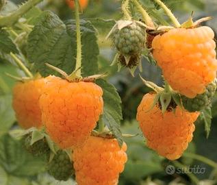 piantini di lampone giallo rifiorente, 5/7 € a seconda della grandezza e del numero di vasi acquistati.