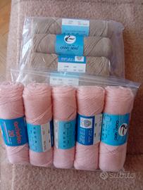 lana vergine di cigno nero, nuovo con etichetta materiale lana di alta qualità, 500 grammi ,10 gomitoli,5 gomitoli colore rosa e 5 gomitoli colore beige