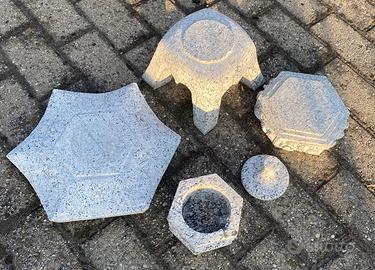 Sono scolpite a mano da un blocco di granito, composta da nr. 5 elementi. Il materiale: Sono in granito naturale autentico, NON sono di cemento, graniglia o polvere di marmo, non soffre il gelo, ideale per esterni. Le dimensione: cm h38x30x30, kg 18, euro 197. cm h58x45x45, kg 52, euro 320. cm h220x180x180, kg 2300, euro 2500. Abbiamo anche il modello: Rankei: composta da nr. 6 elementi. cm h120x60x60, euro 670. Kasuga Gata: composta da nr. 6 elementi. cm h70x25, kg 25.euro 297. Kanjuji: composta da nr. 7 elementi. cm h60x48x38, 60 kg, €410. cm h120x96x76, 450 kg, €1070. Sono disponibili altre foto. Il deposito si trova a 2 km dal casello di Casalpusterlengo sull'autostrada A1, a circa 50 km da Milano. Non siamo sempre presenti in magazzino. Per visionare i prodotti è necessario fissare un appuntamento. Per le spese di spedizione è necessario valutare il comune e il CAP. La commissione per il pagamento in contrassegno è del 1,5% dell'importo. IVA inclusa. Visita il ns. negozio click pulsante "Vai allo shop". Troverete altri bellissimi articoli.