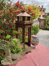 nuova lanterna in legno tinta noce per interno/esterno. misura cm. diametro 27x60h