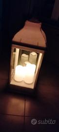 Lanterna Shabby Chic Bianca 35 cm – 3 Candele LED