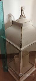 Splendida lanterna decorativa in stile Shabby Chic, colore bianco con raffinato effetto invecchiato. Crea un'atmosfera calda e accogliente in ogni stanza o in giardino (aree riparate). Dettagli del prodotto: Altezza: circa 35 cm (escluso l'anello). Luci: 3 candele a LED integrate con effetto fiamma tremolante (luce calda). Alimentazione: Funziona a batterie (vano sotto la base). Materiali: Struttura e vetrine interamente in plastica resistente. Leggera e sicura, ideale per chi ha bambini o animali (non scotta e non c'è rischio di vetri rotti). Condizioni: Ottime condizioni Disponibile per spedizione o consegna a mano.