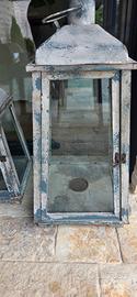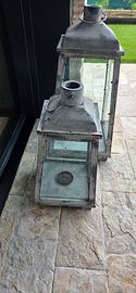 vendo per non utilizzo 2 lanterne con profili in legno e parte alta in metallo , la più piccola misura altezza da terra 60 cm larghezza base 29 cm , la grande misura altezza da terra 80 cm larghezza base 38 , prezzo di entrambe