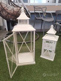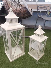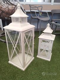 Set 2 lanterne in metallo verniciato con vetri laterali.