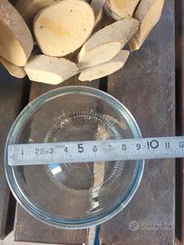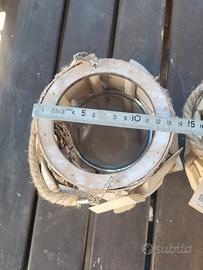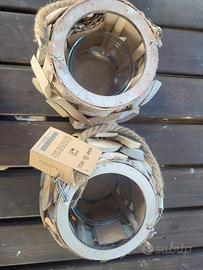 Coppia di lanterne nuove portacandele realizzate con corteccia di pino, con contenitore interno in vetro, adatte anche come portapiante.