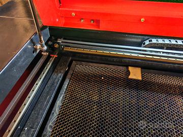 laser co2 cnc, piano 70x50, completo di software dedicato, fate piccole modifiche, prese e pulsanti separati per accensione aria compressore e ventola per estrazione fumi, dotata di raffrescatore acqua molto efficiente, termostato di intervento ecc, il tutto è praticamente quasi nuovo poche ore di utilizzo.