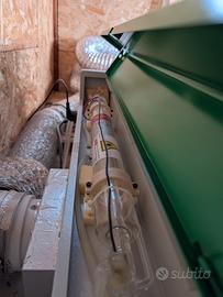 Dotato di guida lineare sull'asse X al posto delle rotelle di plastica, insieme al macchinario cedo anche la pompa per il raffreddamento ad acqua del tubo a vuoto, l'estrattore fumi assiale e il tubo collassabile per l'estrazione.