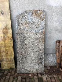 Lastra in granito, dimensioni 70x150x6. Necessita di una pulizia perche lasciata all’esterna ma ottima per realizzare un tavolo fisso all’aperto