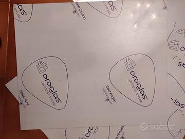 Vendo in blocco a € 120,00 n° 9 lastre acriliche di PMMA colato OROGLASS (Professionali) 60 cm x 50 cm x 3 mm di cui n° 7 nero lucido e n° 2 specchiate , adatte per taglio e incisioni laser . Oppure singolarmente a € 15,00.