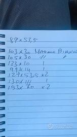 vendo lastre in marmo, sono di varie misure, spessore da 3/4, misure indicate nelle foto. vendo in blocco o separatamente, con la possibilità di consegna gratuita nel raggio di 30km, oltre il 30km, si concorda per una piccola aggiunta