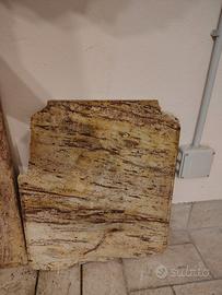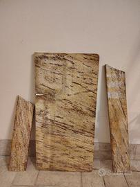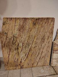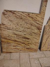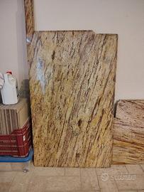 Vendo 5 lastre e 2 spezzoni più piccoli di granito lucidato, con venature dorate e marroni, ricavati dallo smontaggio di una cucina e un bagno.