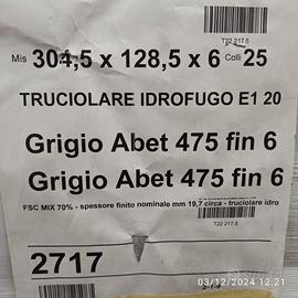 AZIENDA DI ZANE' (VI) VENDE N° 225 LASTRE LEGNO TRUCIOLARE IDRO DIMENSIONI MM 3050x1245x19,6 LAMINATO GRIGIO 2 LATI CERTIFICATO FSC Mix 70% IN PERFETTE CONDIZIONI - VENDITA ANCHE A PICCOLI LOTTI DI 25 LASTRE - PREZZO 31 EURO A LASTRA