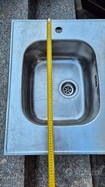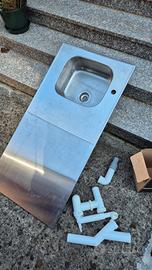 Lavandino in acciaio inox con ripiano in tutto largo 127 cm e profondo 62 cm.