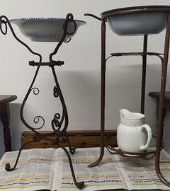 VENDO A EURO 90,00 CADAUNO DUE BELLISSIMI LAVABI IN FERRO BATTUTO CON BROCCA E BACINELLA IN METALLO E CERAMICA